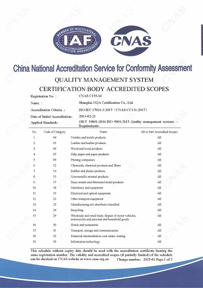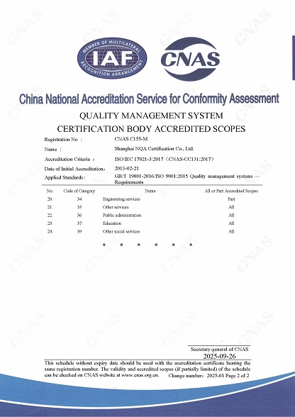 CNAS认可资质(中文) CNAS认可资质(英文)