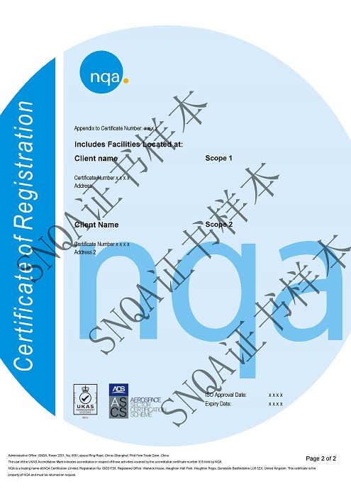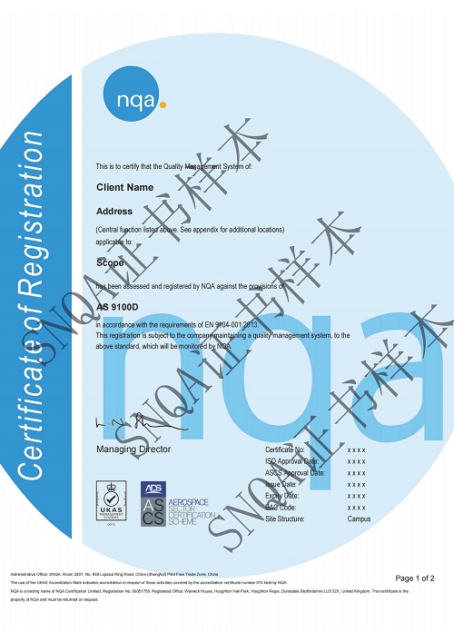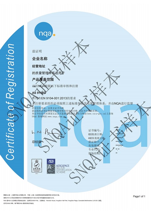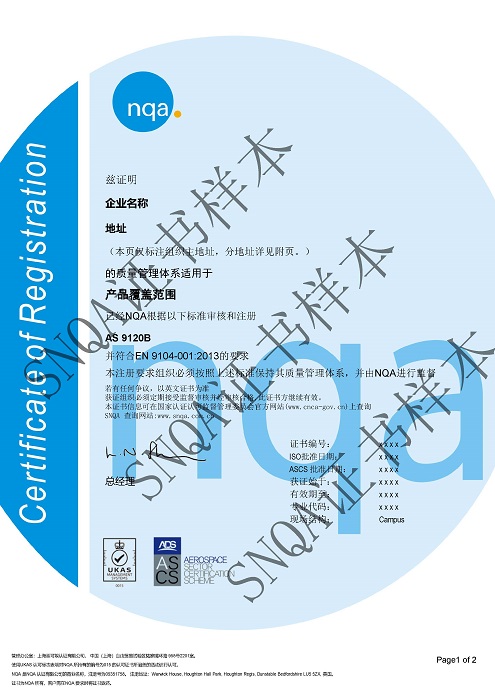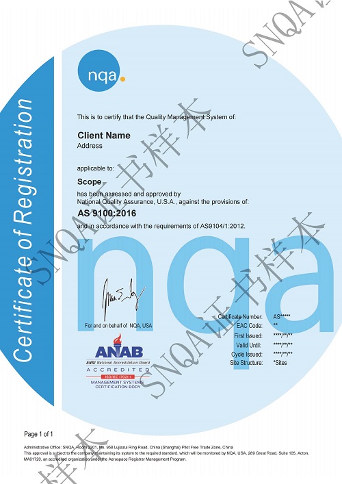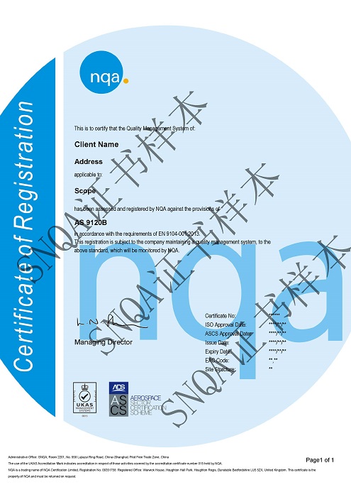 NQA是全球范围内最早被UKAS和ANAB认可可以开展AS认证的认证机构之一。
